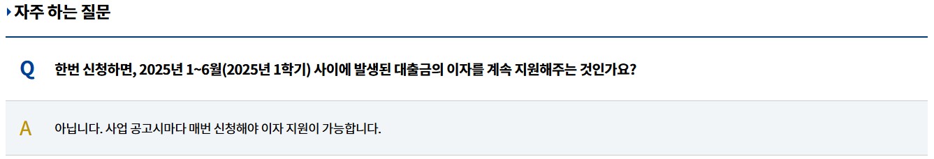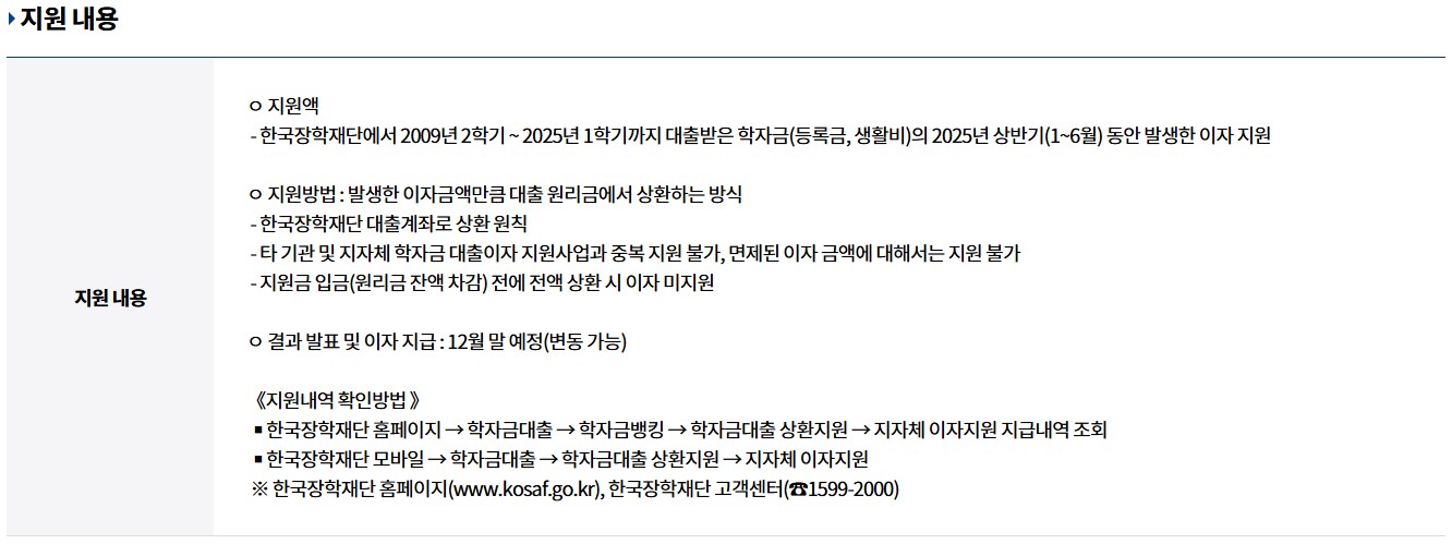| 지원내용 | 2025년 상반기 학자금 대출이자 전액 |