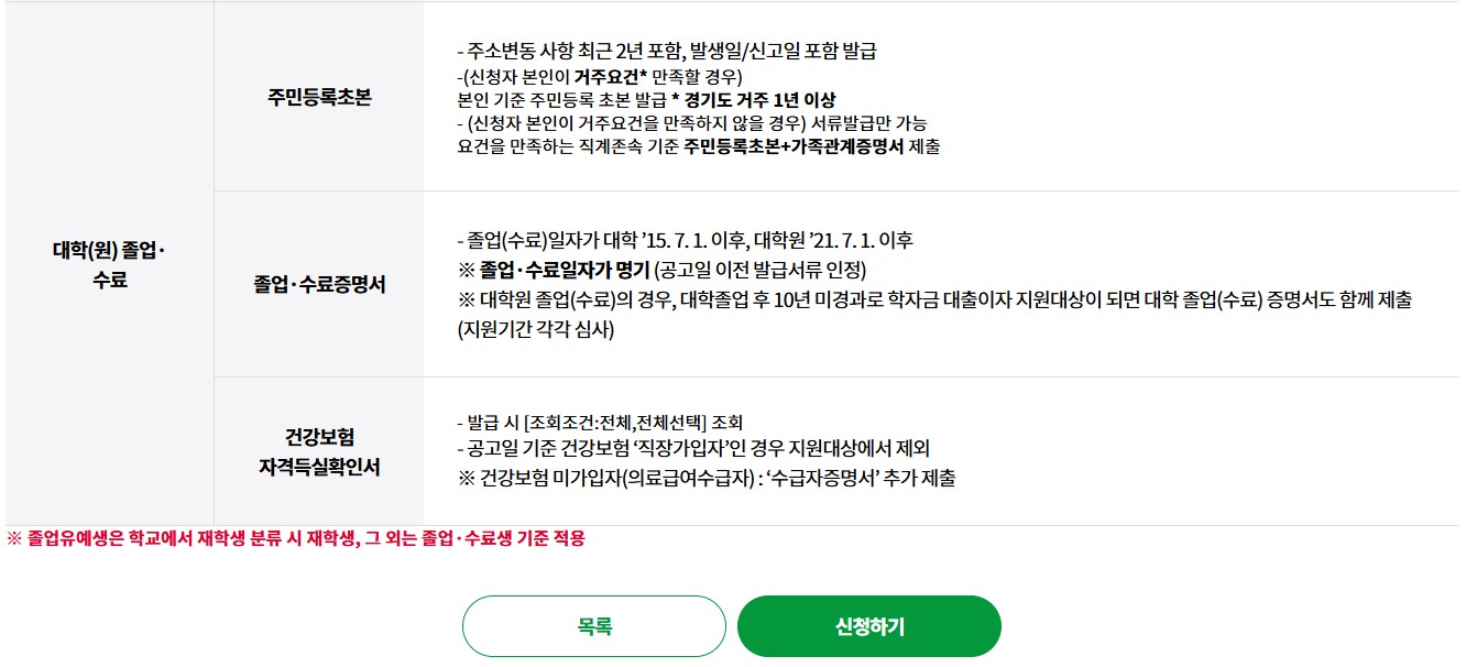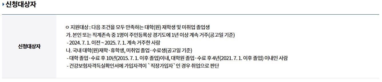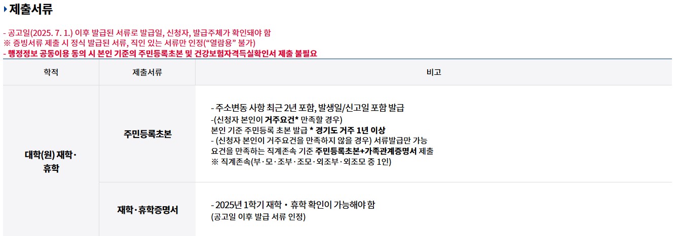 | 거주요건 | 경기도 1년 이상 거주 (본인 또는 직계존속) |